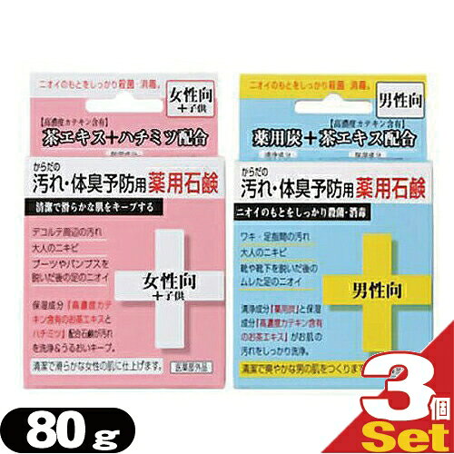 (ネコポス全国送料無料)(保湿成分配合)クロバーコーポレーション からだの汚れ・体臭予防用薬用石鹸 80g(男性向・女性向+子供)3個セット アソート可能【smtb-s】