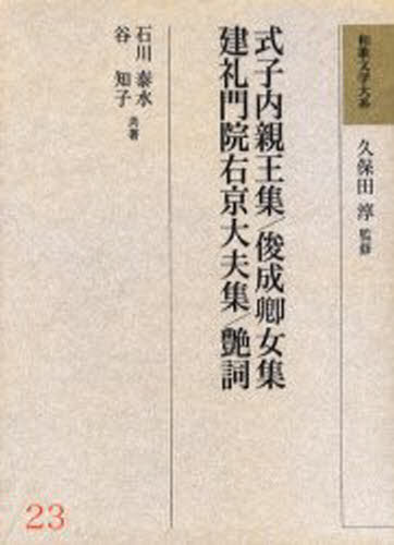 久保田淳/監修和歌文学大系 23本詳しい納期他、ご注文時はご利用案内・返品のページをご確認ください出版社名明治書院出版年月2001年06月サイズ345P 22cmISBNコード9784625413049文芸 短歌・俳句 短歌・俳句一般和歌文学大系 23ワカ ブンガク タイケイ 23 シヨクシ ナイシンノウ シユウ シキシ ナイシンノウ シユウ シユンゼイ キヨウ ノ ムスメ シユウ ケンレイモンイン ウキヨウ ノ ダイブ シユウ ツヤコトバ※ページ内の情報は告知なく変更になることがあります。